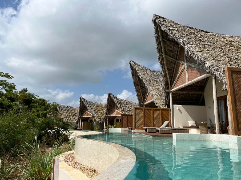 We got checked in and shown to our swim up a villa which was lovely. The whole resort is brand new – it only opened in November. And there are some places where you can see that: buildings still under construction just outside the main resort area, construction detritus poorly hidden, missing landscaping, and the lack of amenities that I know are on the agenda such as a gym et cetera. But still beautiful all the same.