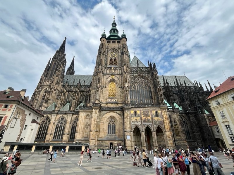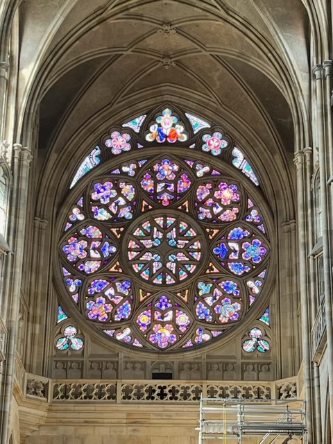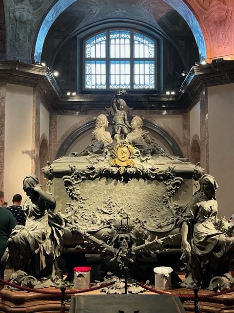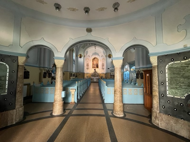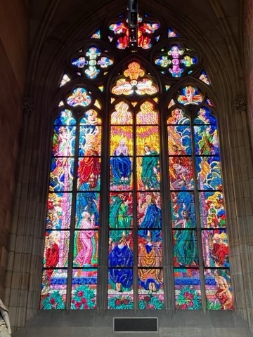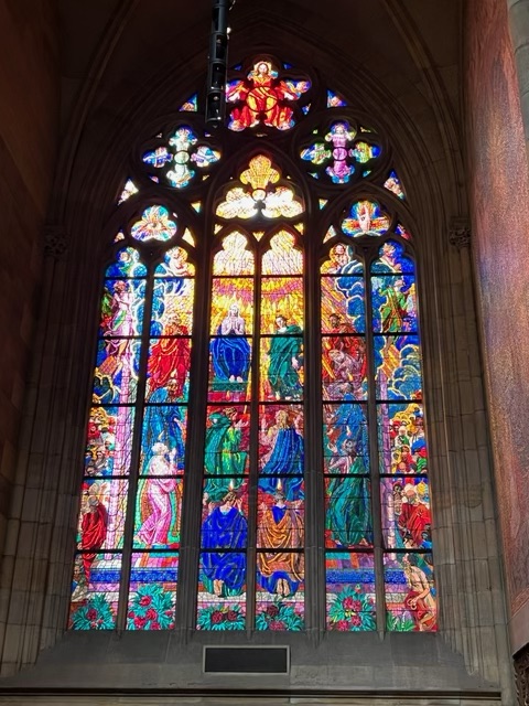 Then it was time to finish touring the old town and see some more churches. First, a few shops for necessities and a new shirt for Frank. A visit to St. Martin’s cathedral was high on the list and was a lovely stop. This was the first Catholic church where they imposed a dress code – no bare shoulders. We saw one of the church staff providing drapes for several tourists that didn’t quite believe that the rules applied to them. Then to the big draw for the day: the Blue Church.