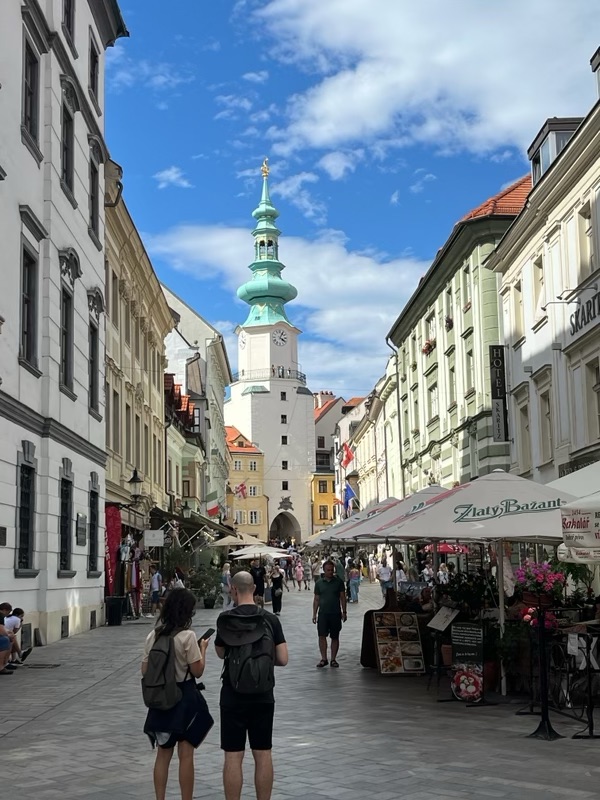 Except we weren’t. We stopped into the shop to see about doing a tasting and were confronted with a small, older woman who apparently spoke no English at all. Any translation I could do into Slovak would be unsuccessful due to my inability to pronounce things correctly. And she just stared at us as if we were aliens. I surmised that international wine tourism had not yet arrived in Slovakia. We made our retreat and then spent a few minutes searching to see where we might find another winery. According to Google maps, they were everywhere around us. A bit more driving led us to realise that they were actually in houses or other small buildings in neighbourhoods. A valuable lesson learned. We assumed that anywhere that made wine would cater to people who wanted to experience the wine and not just buy a bottle. That model has not yet made it to this region. So we decided to cut our losses and head back to the city for an urban picnic instead.