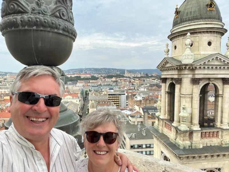 First stop involves some history: St Stephen’s Basilica which happens to be right near where we are staying. Unlike the Mattias Church we visited yesterday which was built in the 13th century, this neoclassical behemoth is barely a hundred years old. The church was designed from the start to be a tribute to King St Stephen, the founder of the Hungarian kingdom, and it even has a reliquary with his 1000+ year old hand. (Ugh) Nevertheless, it’s sheer size is impressive so we took our time ambling (another new walking speed we are learning!) about before heading up to see the treasury and the tower. The treasury isn’t much to write about unless you like over-the-top embroidered chasibles and lots of silver stuff. The tower, on the other hand, has incredible views of the entire city, both the Buda and Pest sides. It seems to me that most of the appeal for various attractions on either side of the river is the view of the other side of the river!