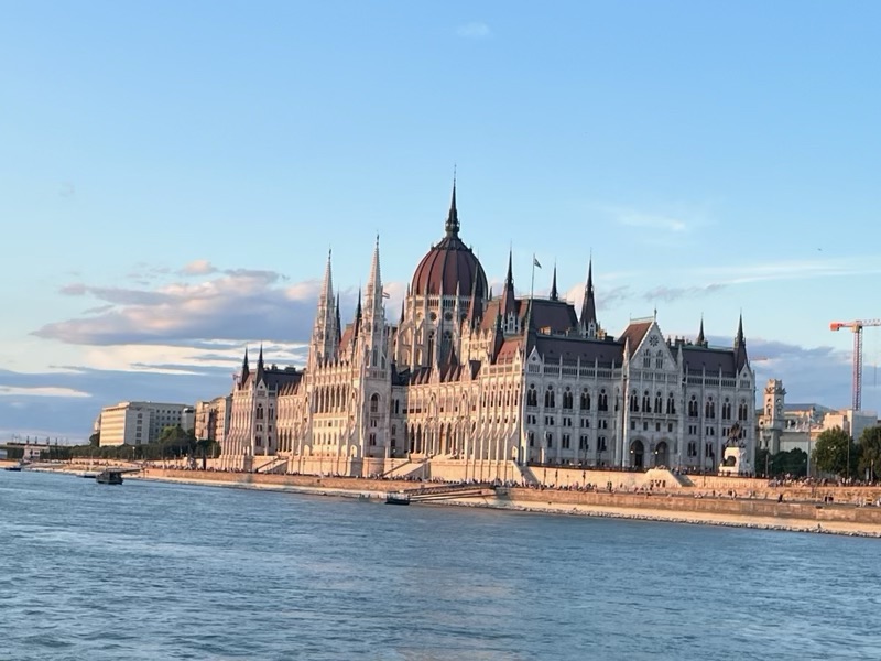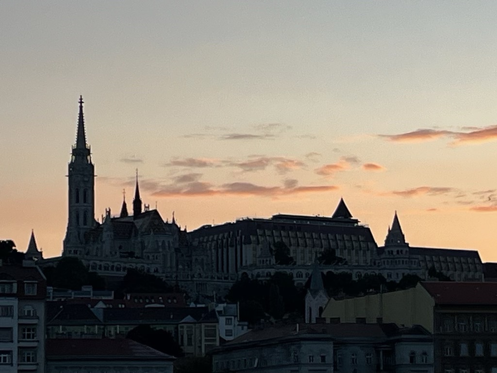 Then it was time for our swan song. We have spent 14 days on a road trip along the Danube and tonight we would take one of the ubiquitous river cruises to complete the trip and say goodbye to Budapest. I had chosen a 19.30 sailing to try to see a good sunset and avoid the heat. Neither ended up being relevant. The weather was glorious and “cool” – around 25 degrees but people were putting on jackets and jumpers anyway! And while we know that the sun set, the view wasn’t that amazing. Still we had some lousy local wine and popcorn and counted all the women on board for hen parties (there were at least 3 “bride to be” sashes spotted).