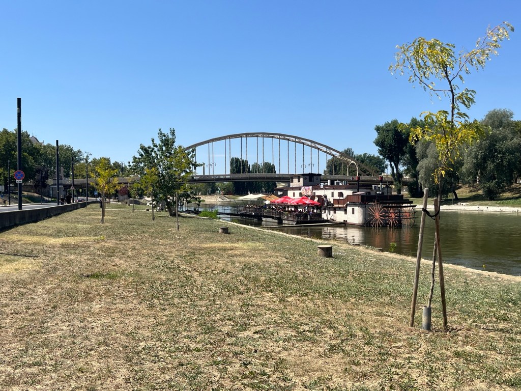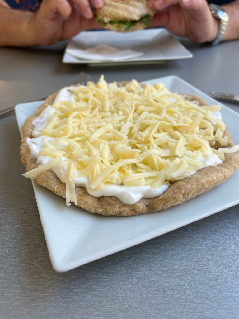 It was already hot with clear blue skies and a brutal sun. No clouds for respite today. But the intrepid travelers mosied on (we found a new walking speed on this trip!) and found a completely gluten free bakery! So I got to start my Hungarian adventure with a local treat: Lángos. Fried bread covered with sour cream and cheese. So yummy! A little more wandering to burn off some of the carbs and then it was time to hit the big city: Budapest!