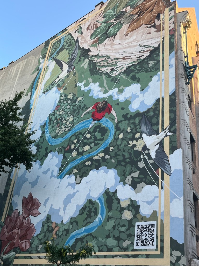 Recent history overview completed, we found ourselves in a part of town that had street art!!!! So a small detour to check out a few murals before we headed back to the main square of the old town to plan the rest of the afternoon. This required refreshment so I finally caved and had the European holiday required drink: an Aperol spritz. I don’t mind them but I’m not as big a fan as sooooo many other folks are. We have regularly seen trays of glasses cleared from cafe tables in mid-afternoon. Nice but not my favorite. Frank declared his local unfiltered lager to have been just the ticket. Our plan was hatched: quick stop at the flat to trop off some purchases and then on to the main Bratislava attactration – the Castle!